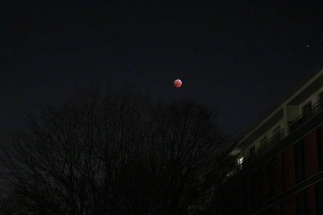 heute bin ich kurz vor 6 Uhr aufgestanden, dann mit Mann schnell vor die Wohnung, und wir konnten den Blut-Vollmond noch einfangen:
