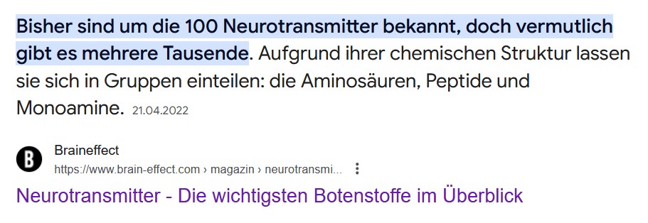 Wenn bereits 100 Neutransmitter bekannt sind, dann kann die Medizin nicht komplett Ahnungslos sein.
