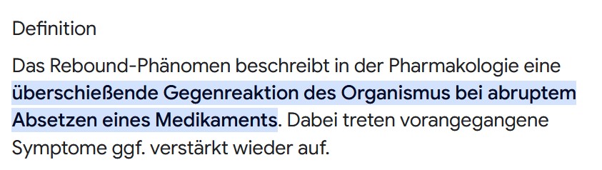 Wenn man Neuroleptika zu schnell absetzt oder reduziert, kann es zu einem Reboundeffekt kommen, wenn sich das Gehirn schon die Neuroleptika gewöhnt hat und für die Umgewöhnung Zeit braucht.