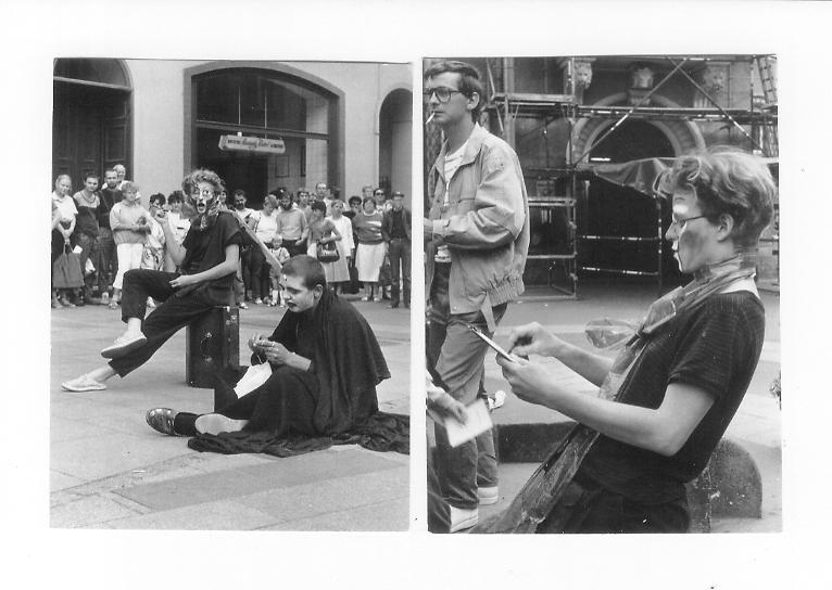 …das bezeugt die Hilflosigkeit vor all diesem Leid… und die Werkstatt ist dann so ein Märchenort, wo niemand Angst vor dem Bösen haben muss, obwohl es allgegenwärtig ist in den Geschichten und Gesichtern.