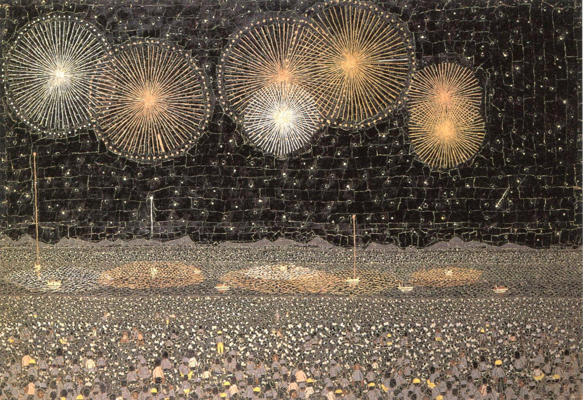 Gestern haben wir unseren Posterdruck bekommen, auf dem Bild ist das Feuerwerksfest von Nagaoka, Japan, abgebildet. Der Name des Malers ist Kiyoshi Yamashita. In Shinjuku findet derzeit eine Ausstellung seiner Werke statt, und ich habe meine Mutter gebeten, sie zu besuchen.