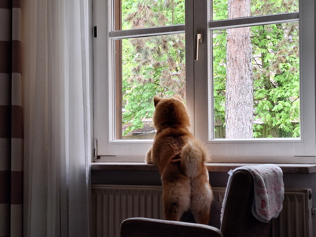 Nach der Ankunft am Mittwoch war Chanchan vergleichsweise sehr unruhig. Wir hatten auch das Pech, dass an dem Abend eine große Schülergruppe untergebracht war, und die Kinder sind im Flur rumgerannt und geschrien usw., teilweise bis 1, 2 Uhr morgens. Chanchan war jedes Mal alarmiert und hat gebellt, als andere Gäste an unserem Zimmer vorbeitgegangen sind, und wahrscheinlich hat sie die erste Nacht kaum bzw. sehr schlecht geschlafen.Am 2. Tag, also gestern, war’s schon viel besser. Die Jugendlichen sind alle abgereist und die neuen Gäste waren sehr ruhig. Vielleicht sind viele Zimmer auch nicht besetzt. Ich kann auch sehen, dass sich Chanchan wieder gut entspannen kann und das Hotelzimmer und die Situation, dass wir auf einer Reise sind, angenommen hat.