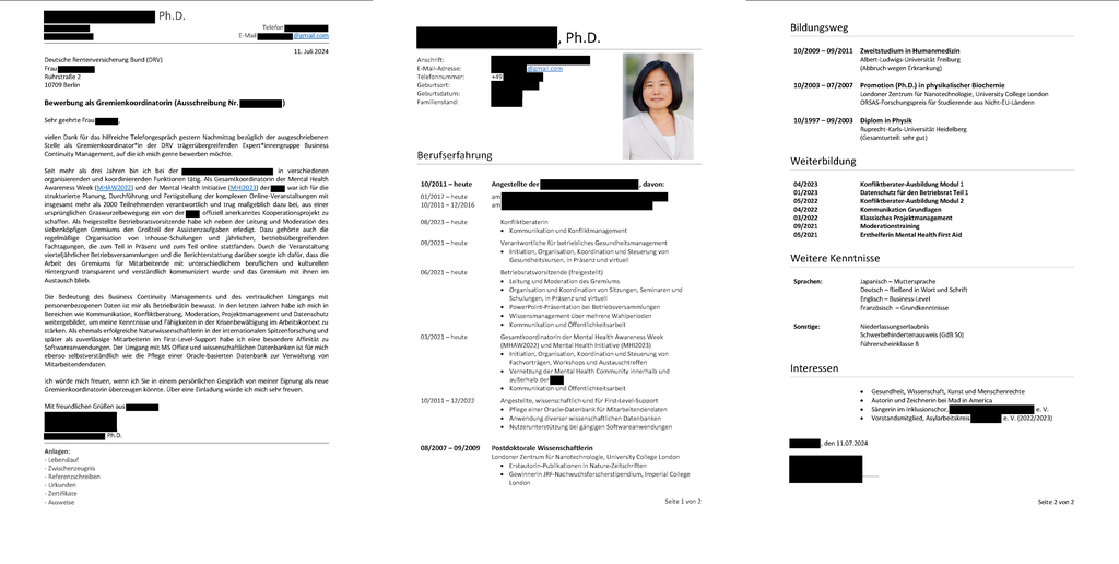 Das war die erste und letzte Bewerbung, die ich eingereicht habe, nachdem eine sehr kompetente Karrierecoach mir zu meinen Bewerbungsunterlagen beraten hatte.