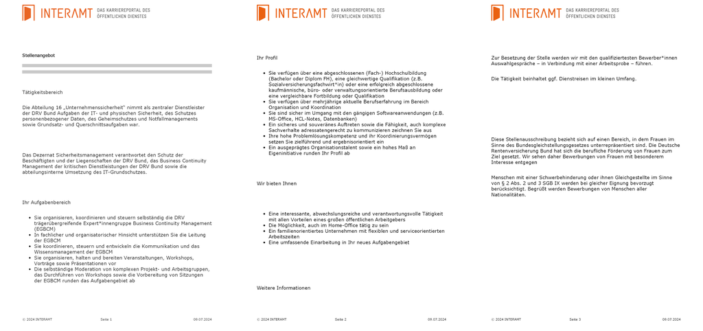 Es handelt sich um eine Stelle als Gremienkoordinatorin bei der Deutschen Rentenversicherung.