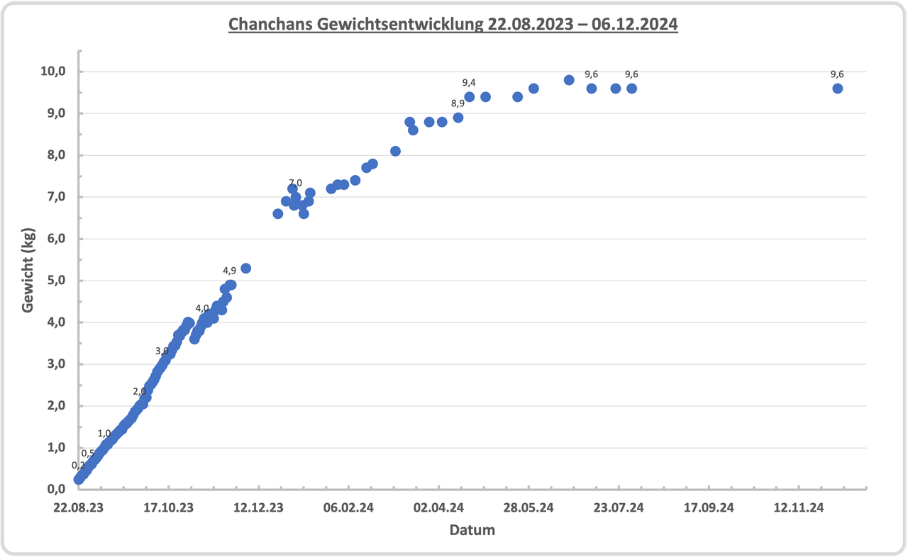 Chanchan wird diesen Monat 16 Monate alt und wiegt ausgewachsen 9,6 kg