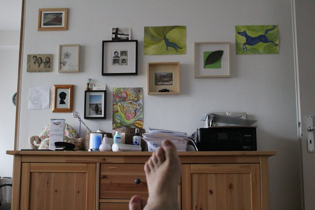 Gechillt auf der Couch liegend habe ich dieses Foto von unserer Bilderwand gemacht: