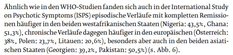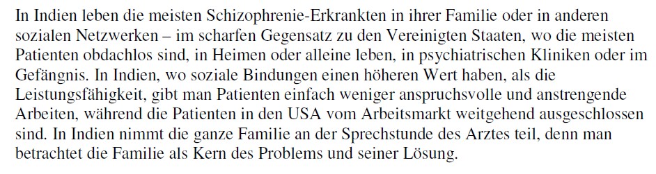 Aber wie gesagt, ich meine, dass hier andersum jemand mal gepostet hätte eine Studie, in der es darum ging, dass es für die Genesung in Deutschland förderlich wäre, wenn der Erkrankte nicht in der Familie verbliebe. Ich kann das aber gerade nicht belegen.