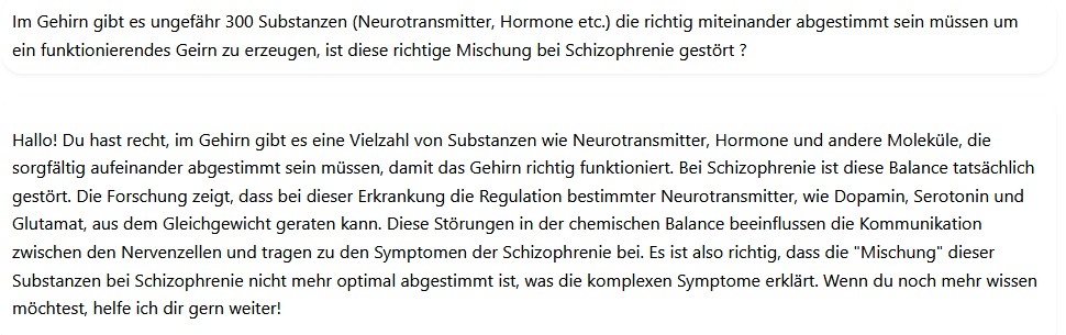@Horst so ist die Theorie. Aber wenn du nur sagst, in der Flasche ist mehr drin als sonst, und kein Wasser mehr, das stimmt bei Drogen, und bei Psychosen, klar, aber du weisst ja nicht was genau dann drin ist und in welcher Mischung, und was passiert, wenn man es trinkt (im Vergleich zu Wasser). So ist das, Drogen mit Psychosen zu vergleichen. Psychologen und Psychiater sind auch schnell nach der Entdeckung von LSD davon abgewichen, es als „Standdardmodell zum Nachvollziehen von Verrücktheit“ zu sehen. Die Erfahrung ist zu anders, bei den meisten ja auch völlig kontrolliert. Ich denke, das Zeug hat einfach zu viel Spass gemacht, deswegen wollten die Psychiater das alle ausprobieren und brauchten eine gute Ausrede! Haha, aber irgendwann hammse gemerkt das hat Nebenwirkungen, dann haben sie lieber damit aufgehört. Kein Witz, so ist das in der Realität oft wirklich…